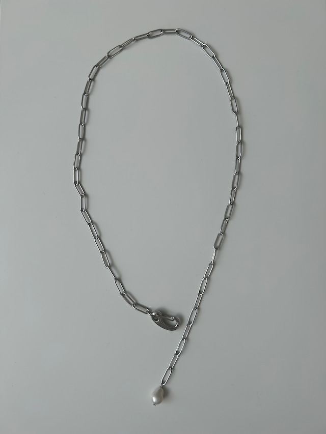 perl chain necklace -silver-