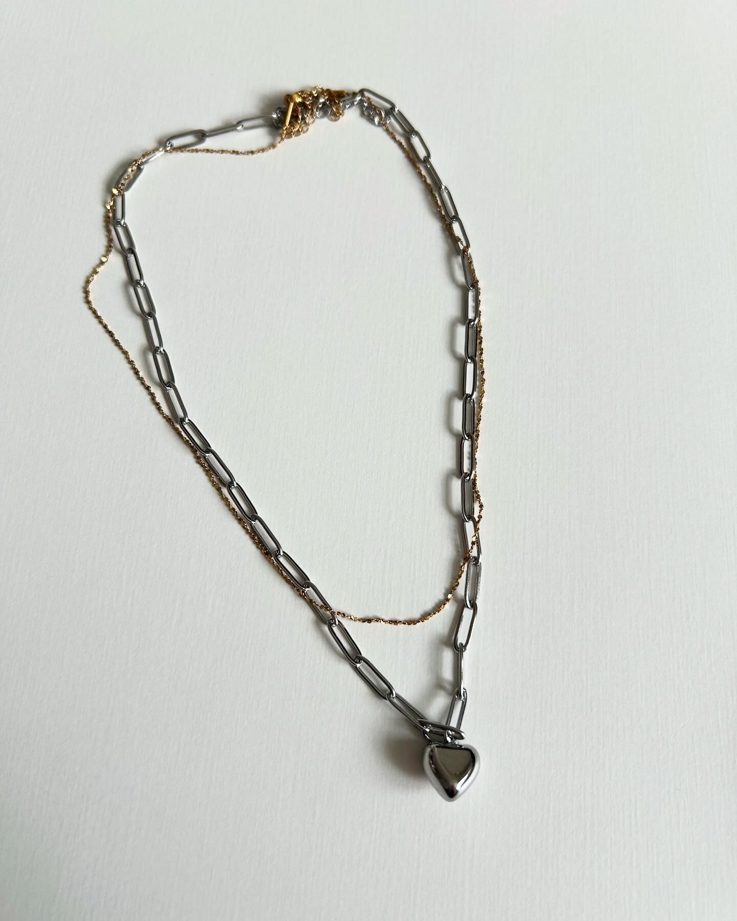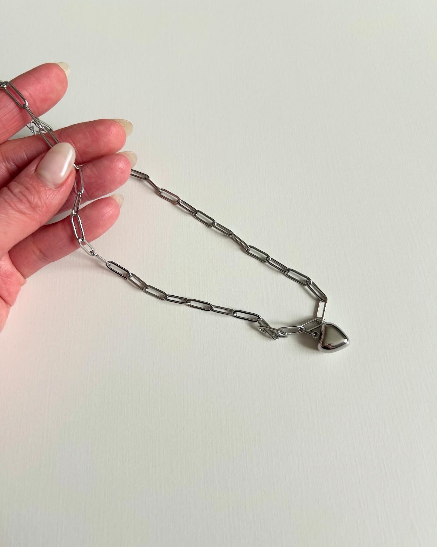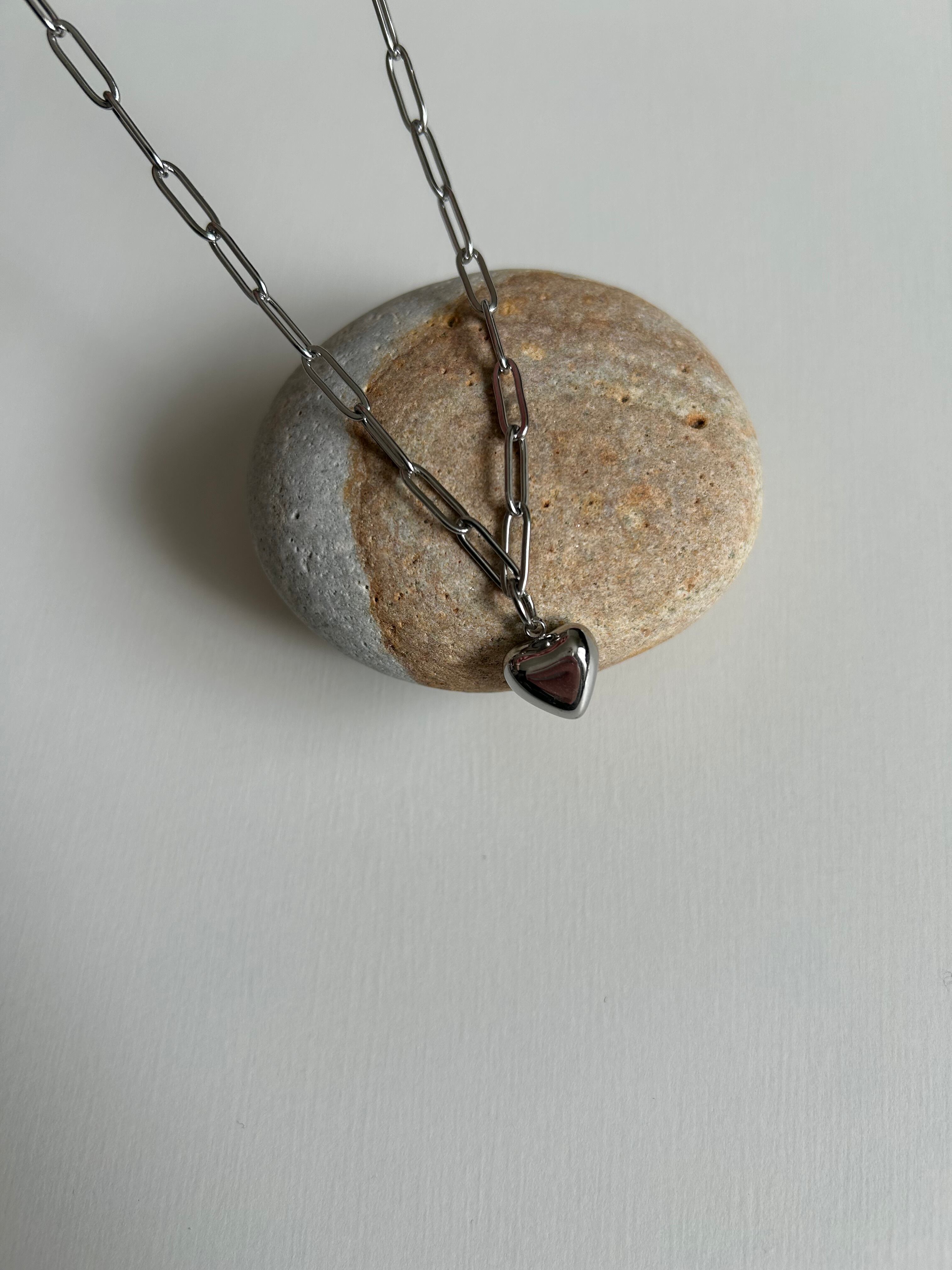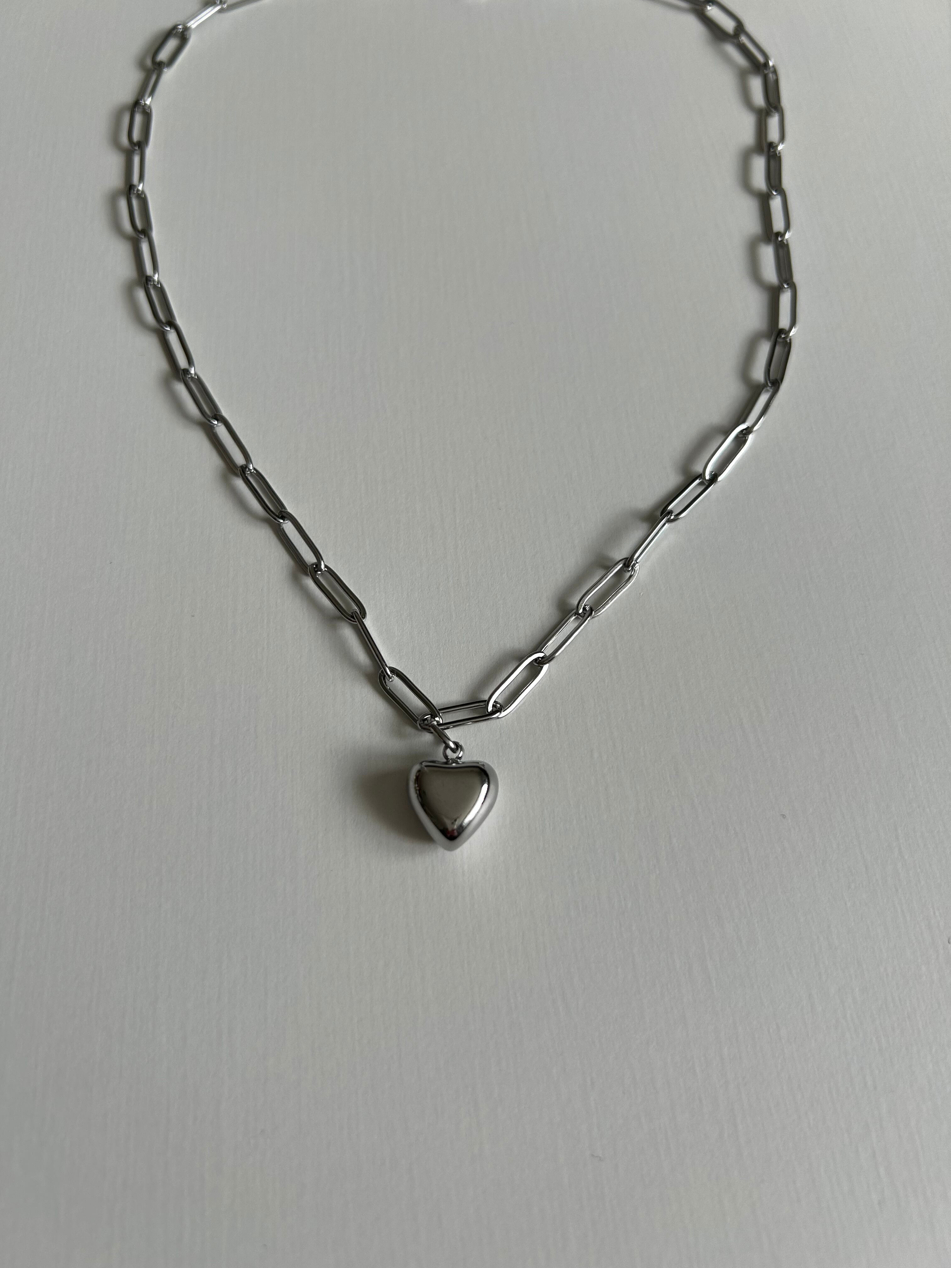 chain heart necklace -silver-